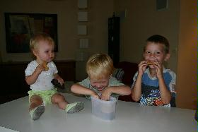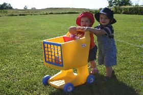 Julia mit ihrem Freund Samuel und Peter im Einkaufswagen, August 06